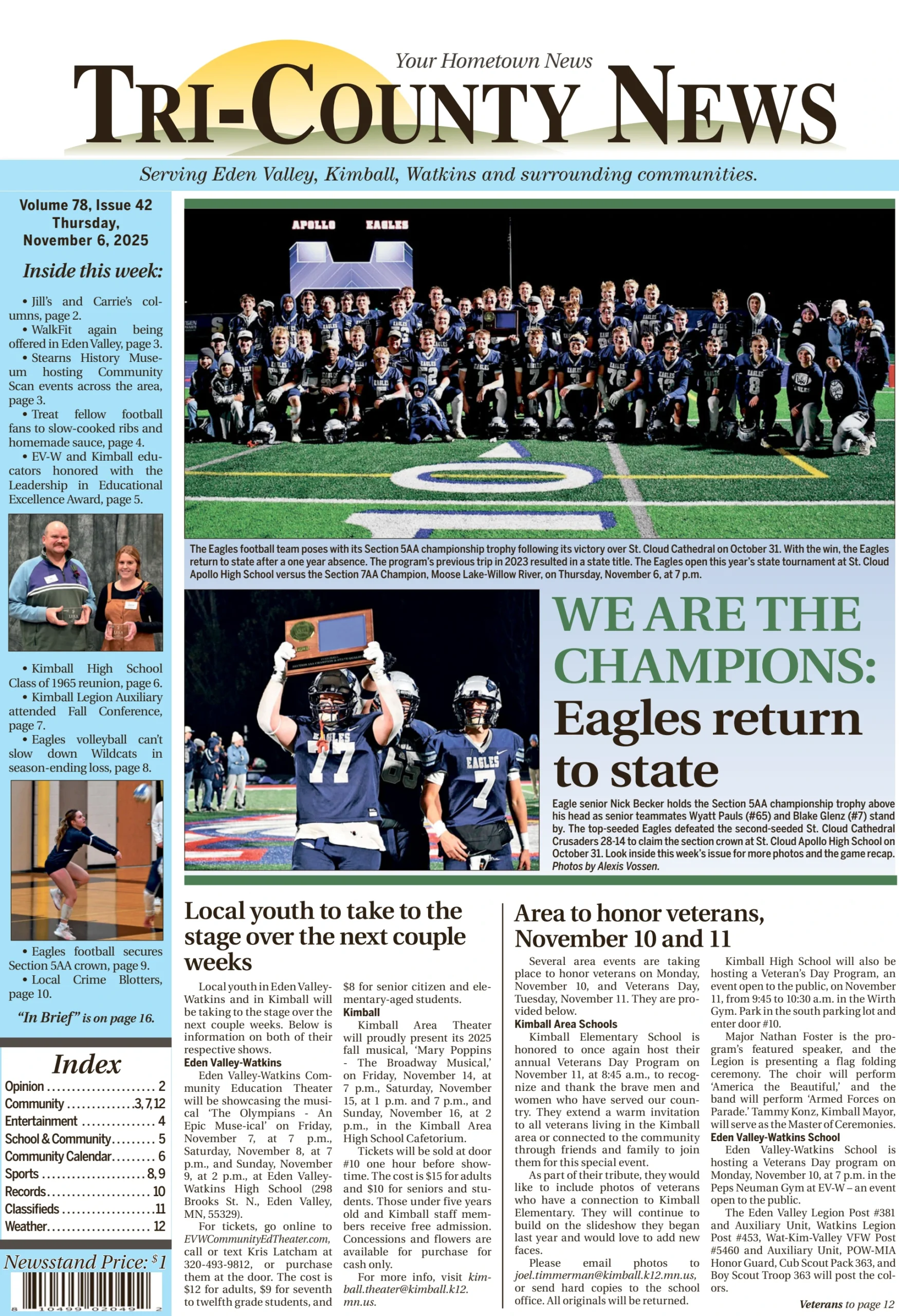 Subscribe to the Tri-County News to stay current on the news in your community!