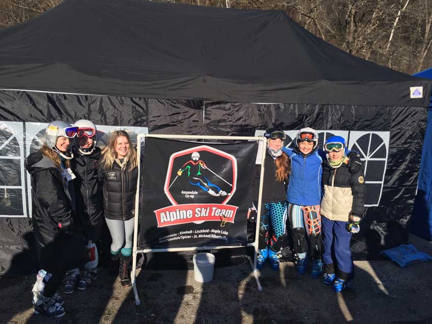 Alpine ski team (left to right) Anne Boesen, Rachael Boesen, Suzanne Schneider, Kaylee Mackenstadt-Everett, Isabel Wester, Claire Tikkanen. Three on the team represent Kimball. All did really well and seventh-grader Tommy Becker really had a good first experience and did very well.