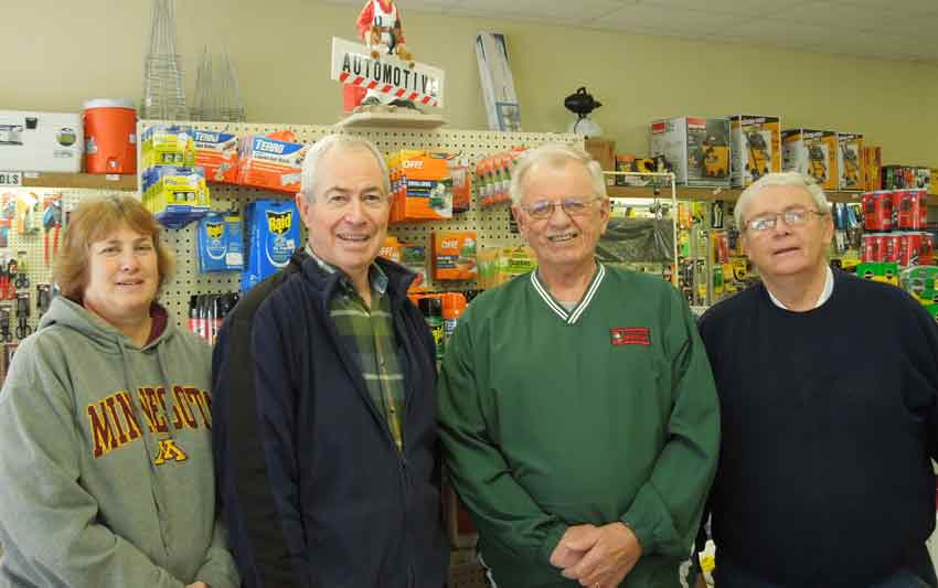 Karen Donnay, Bill Tschumperlin, Dave Knutson, and Chuck Hunt: some of the knowledgeable staff on-hand at Ertl Hardware in Watkins.