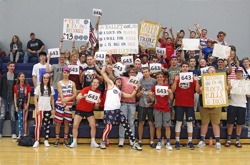 Student fans cheered on Halle Jansen’s record-breaking kill Tuesday night, Sept. 18, against New London-Spicer. Staff photo by Anton Matua.