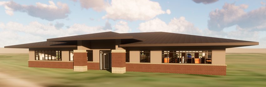The architect’s rendering of the new Kimball Public Library building, to be built on the corner of Spruce Avenue and Elm Street, roughly between Dingmann Funeral Care on Highway 15 and the high school. The city of Kimball has already purchased the land, and $400,000 is needed this month in donations and pledges to apply for a matching grant to build it. View more plans and a fly-through of the building, and make a donation, at www.kimball-library.org.